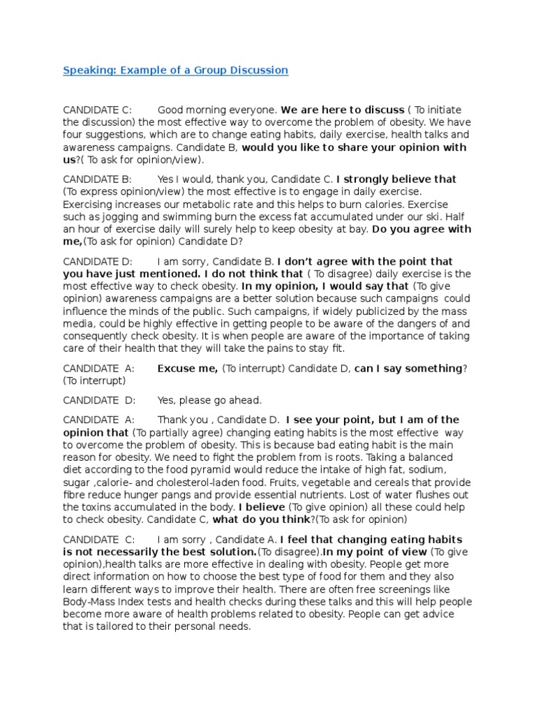 English Group Discussion Pdf Obesity Foods